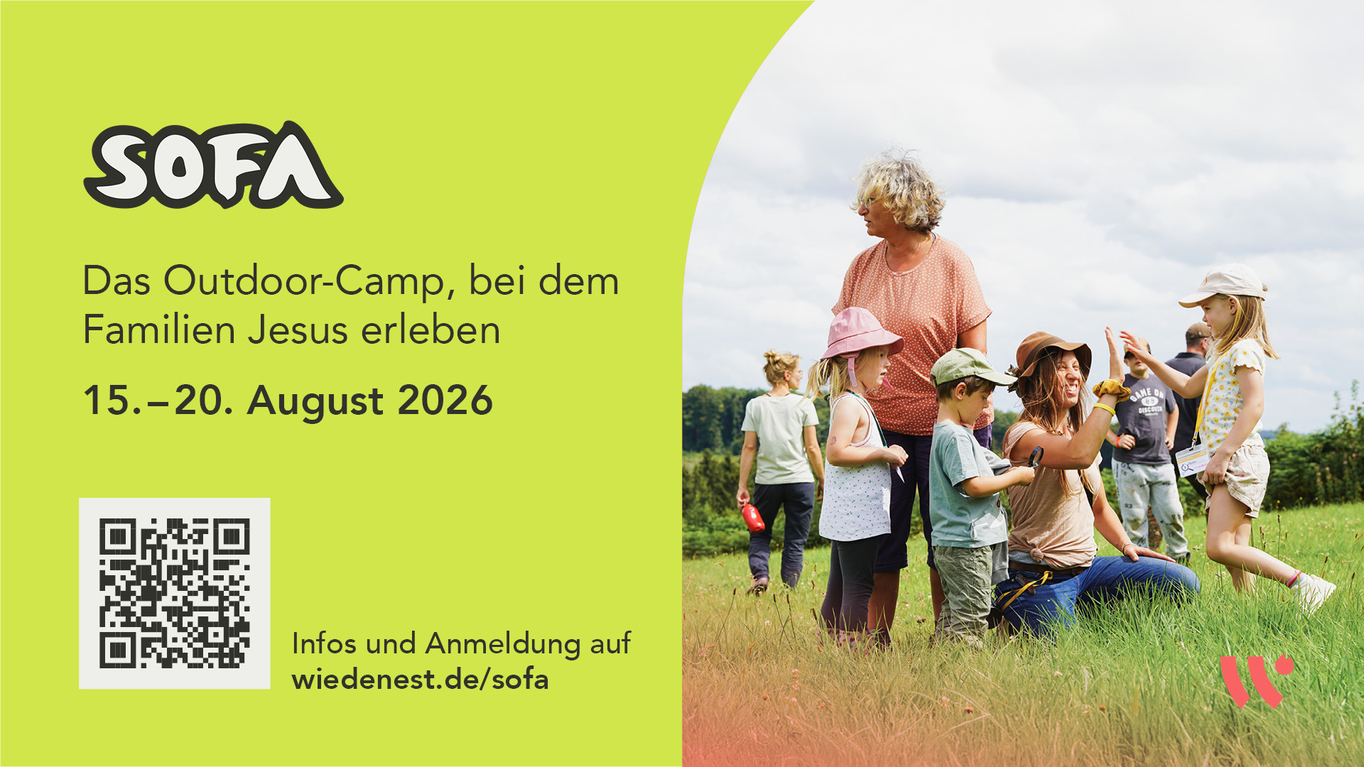Das Herzstück der Gesellschaft – die Familie. Hier wird im vertrauten Kreis Liebe gelebt, Vergebung erlernt, Glauben geprägt und auch mal Quatsch gemacht. Gott hat Familie erfunden. Er will mit seiner Liebe der Mittelpunkt jeder Familie sein, weiß um ihr unendliches Potential und kennt auch ihre ganz besonderen Anforderungen. Genau darum geht es beim SOFA, dem Sommerlager für Familien. Wir nehmen uns ein paar Tage Auszeit und kommen raus aus dem Alltag, rein in die Natur. So wird auch das Zähneputzen unter dem Sternenhimmel zu einem prägenden Moment. Euch erwarten Outdooraktionen, Familiengottesdienste, kreative Workshops, Familienzeit am Lagerfeuer und vieles mehr.